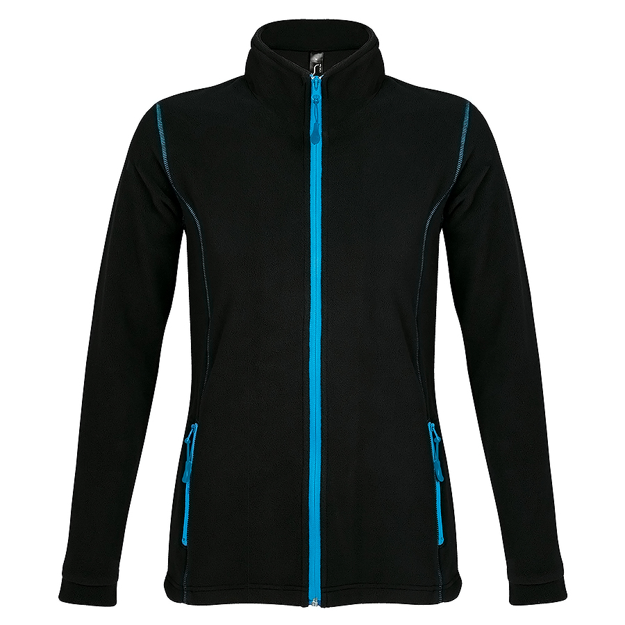ТОЛСТОВКА "NOVA WOMEN", ЧЕРНАЯ С ЯРКО-ГОЛУБЫМ_L, 100% ПОЛИЭСТЕР, ФЛИС, 200Г/М2