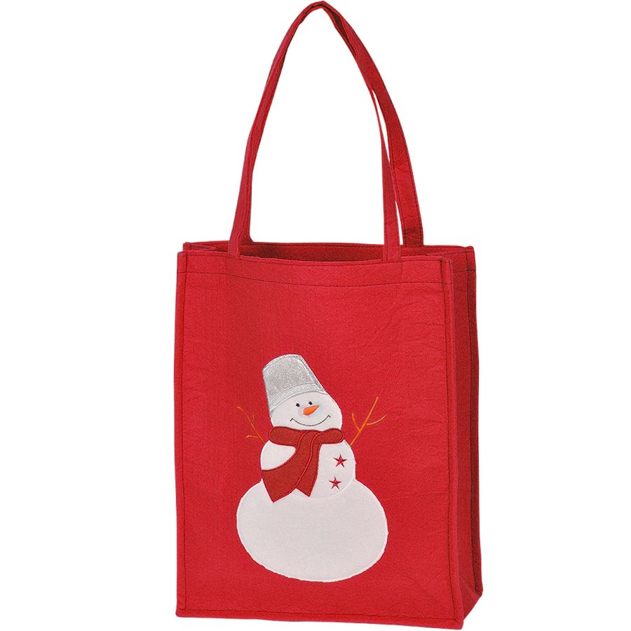 СУМКА "СНЕГОВИК" С АППЛИКАЦИЕЙ, КРАСНЫЙ, 40*33*9 СМ, ВОЙЛОК, ШЕЛКОГРАФИЯ