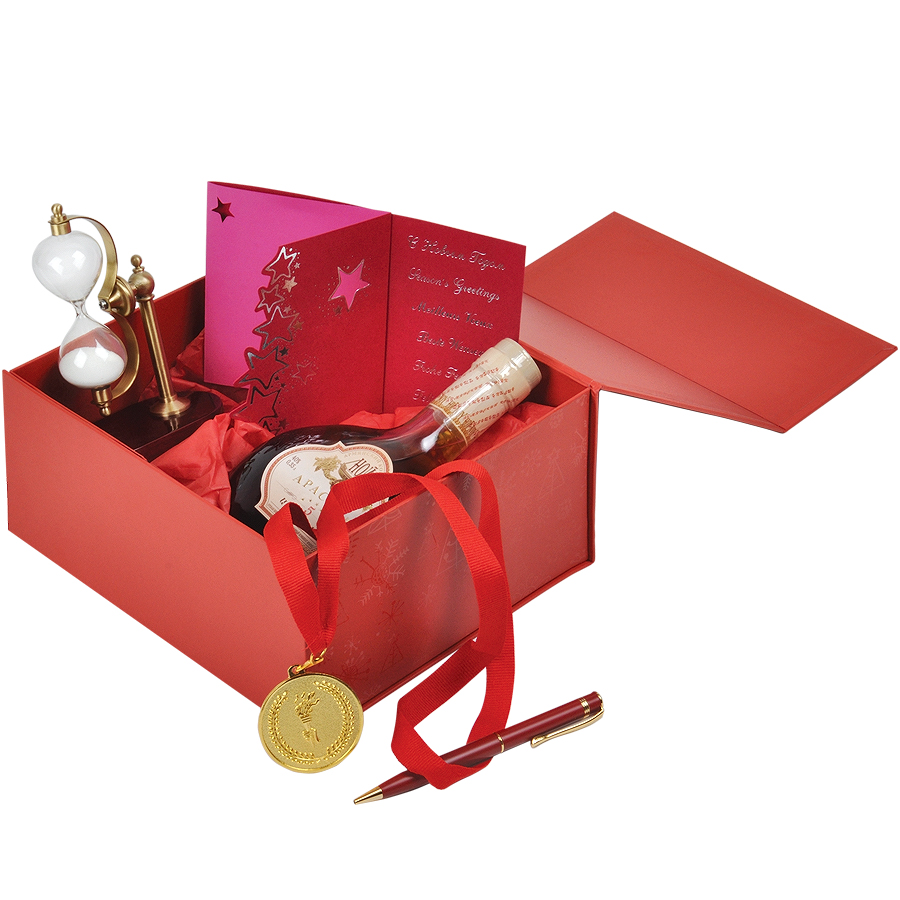 КОРОБКА ПОДАРОЧНАЯ СКЛАДНАЯ, КРАСНЫЙ, 22 X 20 X 11 CM, КАШИРОВАННЫЙ КАРТОН, ТИСНЕНИЕ, ШЕЛКОГРАФИЯ