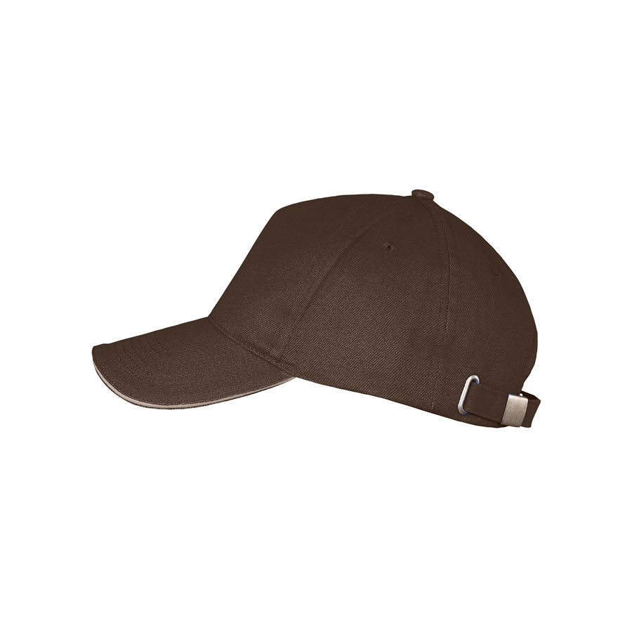 БЕЙСБОЛКА "LONG BEACH", 5 КЛИНЬЕВ, МЕТАЛ. ЗАСТЕЖКА, ШОКОЛАД/БЕЖЕВЫЙ, 100% ХЛОПОК, ПЛОТНОСТЬ 260 Г/М2