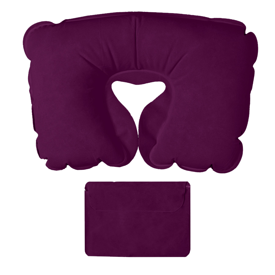Подушка надувная дорожная в футляре; фиолетовый; 43,5х27,5 см; твил; шелкография