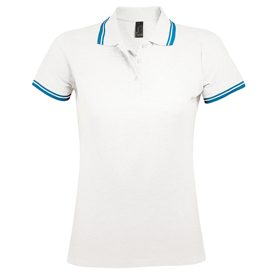 Поло "Pasadena Women" белый, голубой__L, 100% х/б, 200г/м2