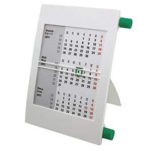 КАЛЕНДАРЬ НАСТОЛЬНЫЙ НА 2 ГОДА; БЕЛЫЙ С ЗЕЛЕНЫМ; 18Х11 СМ; ПЛАСТИК; ТАМПОПЕЧАТЬ, ШЕЛКОГРАФИЯ