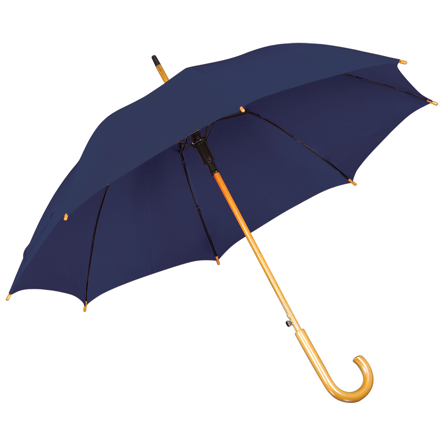 Зонт-трость с деревянной ручкой, полуавтомат; синий; D=103 см, L=90см; 100% полиэстер