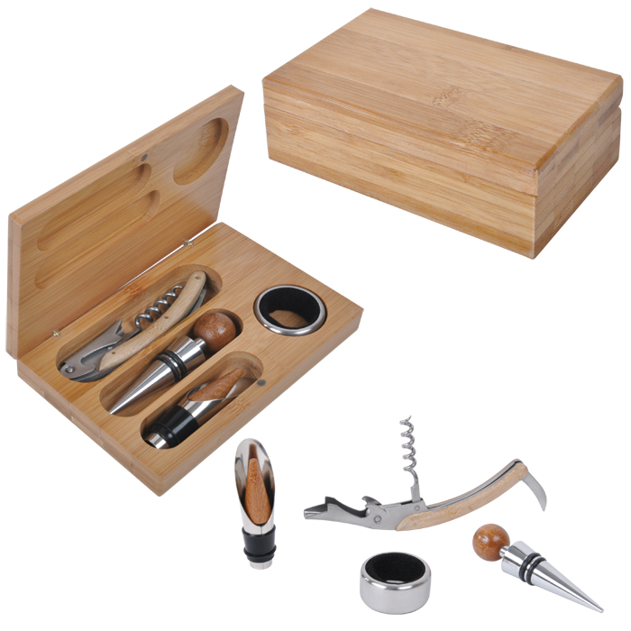 НАБОР ДЛЯ ВИНА (4 ПРЕДМЕТА); 16Х11Х3 СМ; ДЕРЕВО, МЕТАЛЛ; ЛАЗЕРНАЯ ГРАВИРОВКА, ШИЛЬД