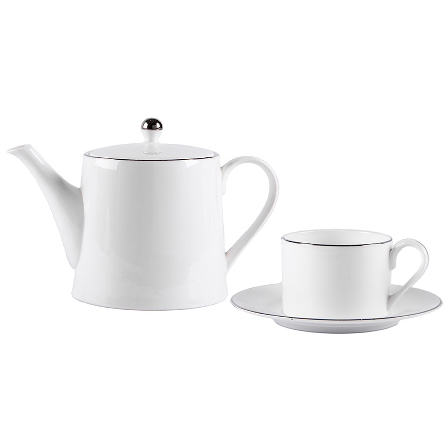 Чайник и чайная пара PLATINUM в упаковке, 200мл и 900мл, костяной фарфор