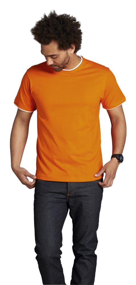ФУТБОЛКА МУЖСКАЯ С КОНТРАСТНОЙ ОТДЕЛКОЙ MADISON 170, ОРАНЖЕВЫЙ/БЕЛЫЙ