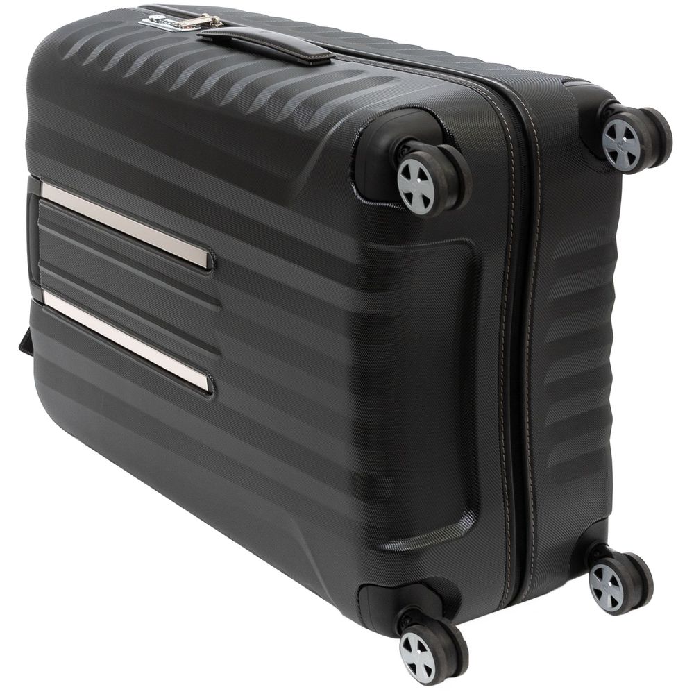 Чемодан E-Lite изготовлен из ударостойкого поликарбоната с интересной ребристой фактурой — смотрится эффектно, а еще противостоит появлению царапин и выгоранию, сохраняя первозданный внешний вид изделия долгое время. Наружные и внутренние элементы — ручки, фурнитура, обрамление молний и адресная бирка — выполнены из натуральной кожи, благодаря чему чемодан E-Lite приобретает по-настоящему изысканный вид.Сделано в Италии. Итальянское мастерство, материалы высочайшего качества и продуманные детали делают продукцию Roncato незаменимой для любителей элегантных путешествий.