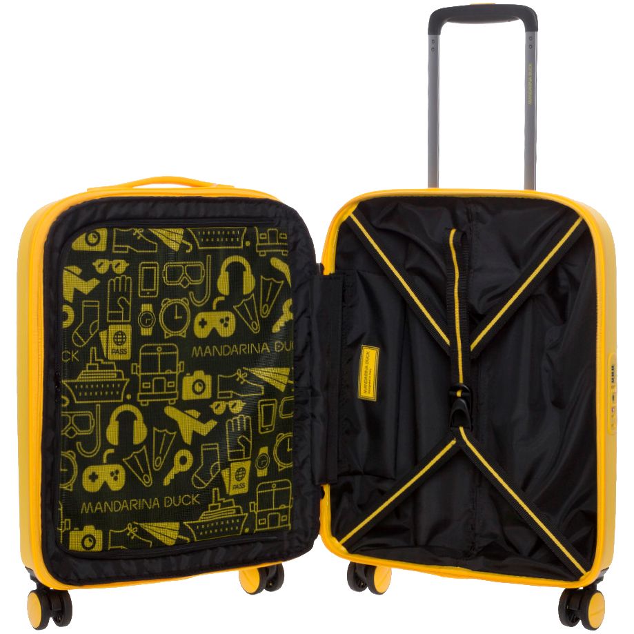 Коллекция чемоданов из поликарбоната Logoduck+ стала настоящим бестселлером: обтекаемые изящные формы, колеса в тон корпуса, крупный логотип бренда, подкладка с принтом и яркие цвета делают их уникальными в своем роде. Упаковочные ремни, разделитель на молнии и дополнительный карман для мелочей помогут аккуратно упаковать вещи для поездки на 1-3 дня.Вдохновитесь настоящим итальянским качеством вместе с практичным чемоданом Logoduck+!
