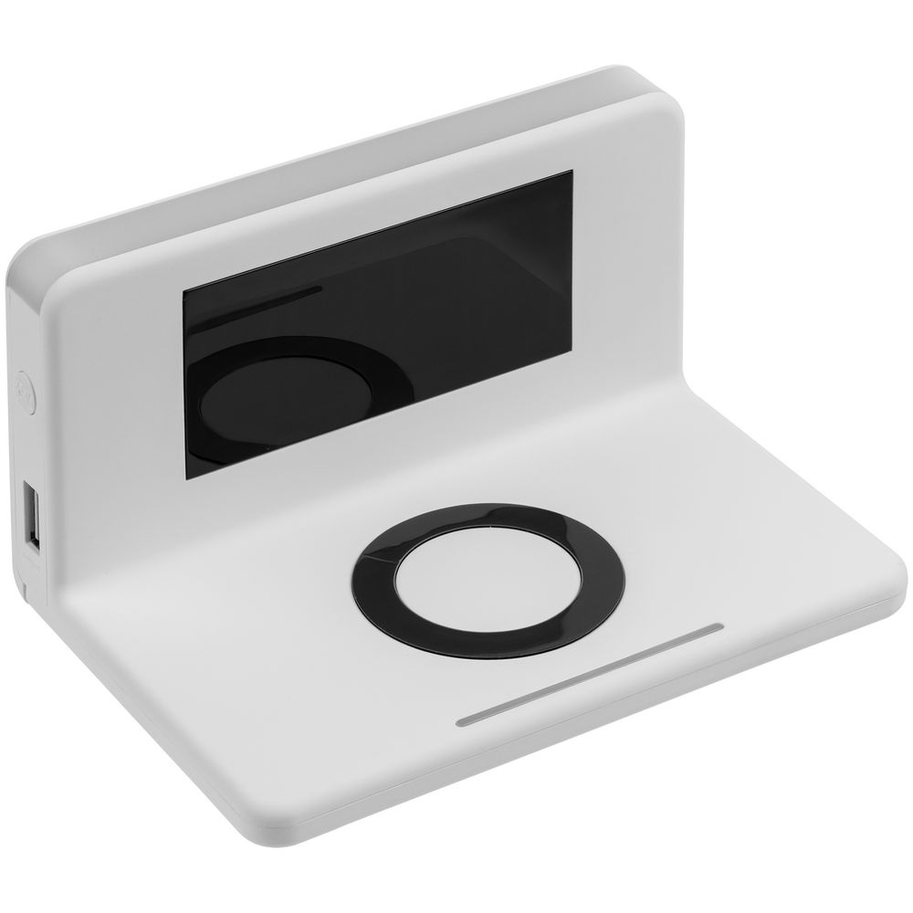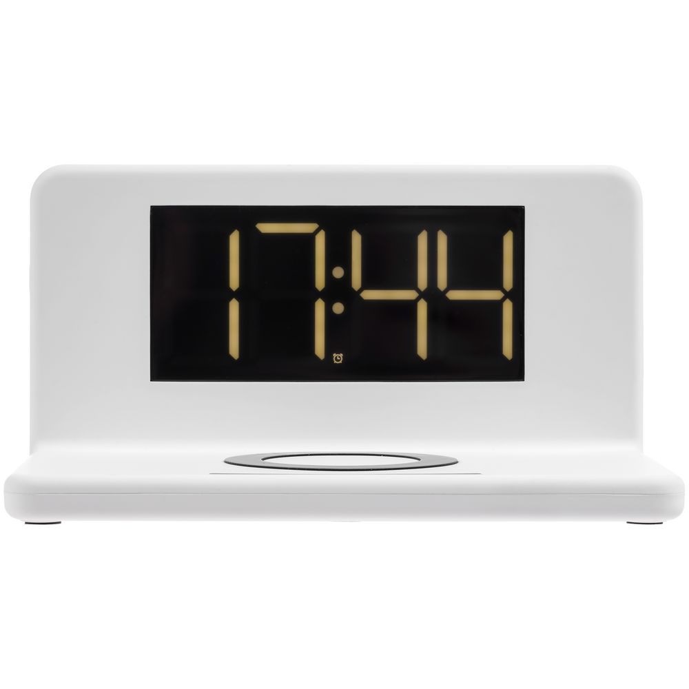 Часы настольные с беспроводным зарядным устройством Pitstop, белые