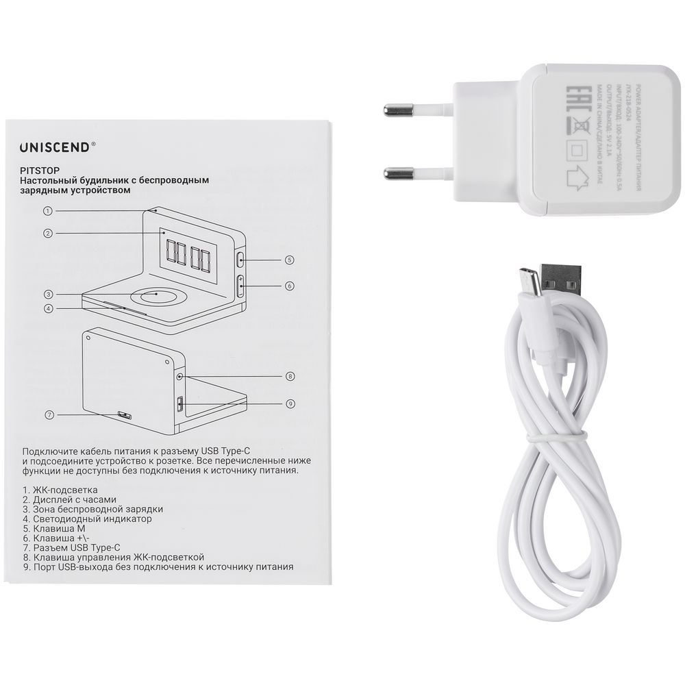 Pitstop — многофункциональное устройство, которое сочетает в себе функции настольных часов, будильника, станции для беспроводной и проводной зарядки устройств и ночника.Зарядная станция совместима со всеми мобильными устройствами, поддерживающими технологию беспроводной зарядки Qi. Зарядка начнется автоматически при размещении смартфона на индукционной площадке. USB-порт для проводной зарядки расположен в торце устройства. Три режима подсветки разной интенсивности позволяют использовать Pitstop в качестве дополнительного источника света днем или ночью.Поставляется в индивидуальной упаковке.Внимание! Не все модели смартфонов поддерживают функцию беспроводной зарядки.