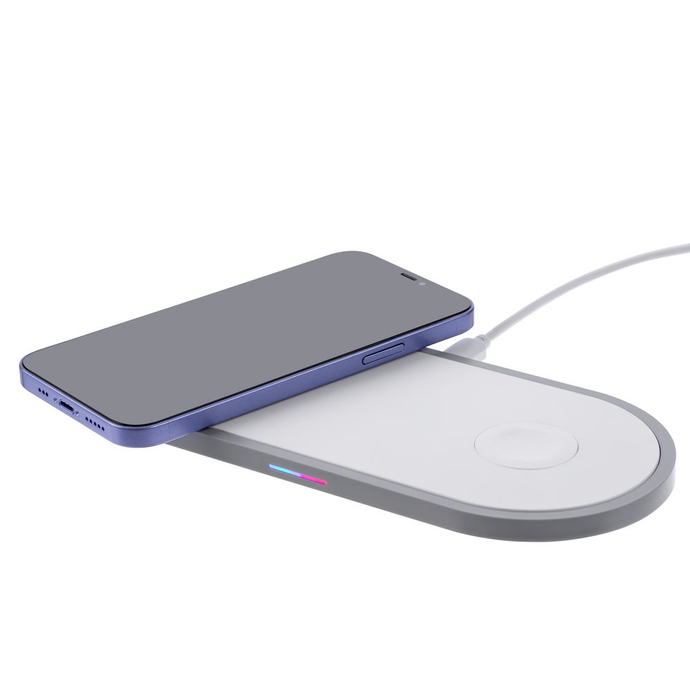 Настольная станция Fulcrum позволяет заряжать смартфон (iOS или Android), наушники и часы Apple Watch (со 2-ой до 8-ой версий) с поддержкой функции беспроводной зарядки Qi. Основной слот поддерживает технологию быстрой зарядки Quick Charge. Область для зарядки наушников может использоваться и для заряда второго смартфона, но уже без быстрой зарядки.Большая область нанесения, матовая фактура пластика, на которой не так заметны царапины и потертости, возникающие при эксплуатации — все это делает зарядную станцию Fulcrum полезным и оригинальным подарком.Внимание! Не все модели смартфонов, часов и наушников поддерживают функцию беспроводной зарядки.