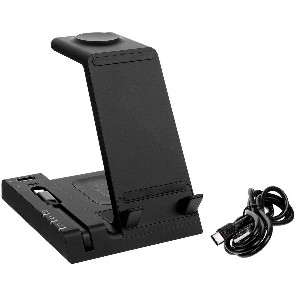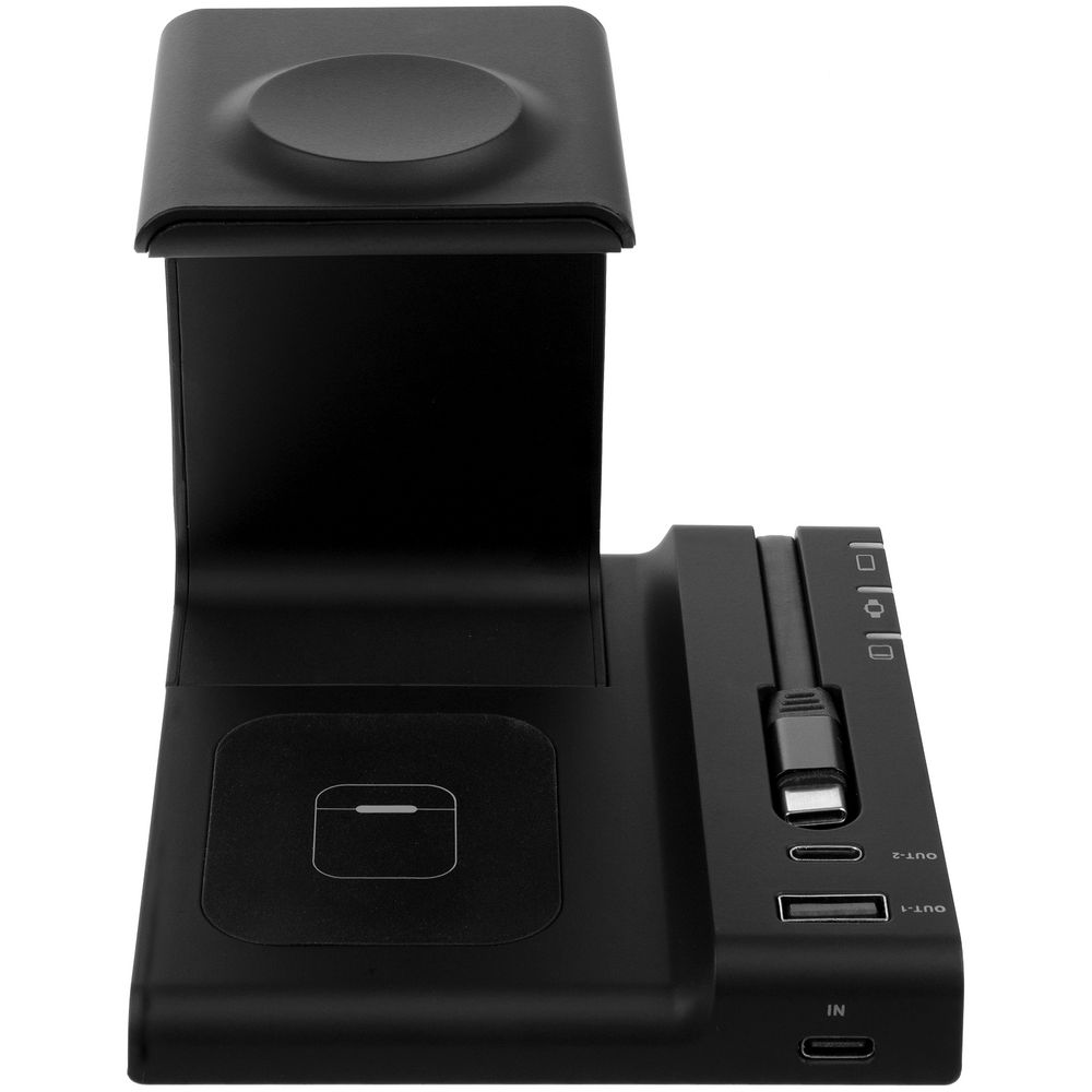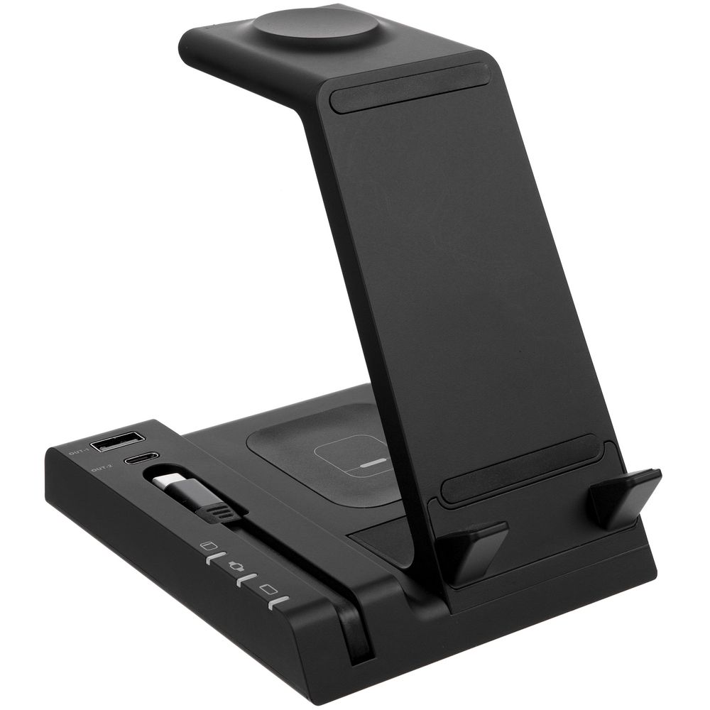 Зарядная станция Tres высшего уровня сложности позволяет заряжать до 5 гаджетов одновременно: телефон, часы Apple Watch 2–8, наушники с поддержкой протокола беспроводной зарядки Quick Charge и еще 2 устройства через кабели с разъемами USB-А и Type-C. Внимание! Не все модели смартфонов, часов и наушников поддерживают функцию беспроводной зарядки.