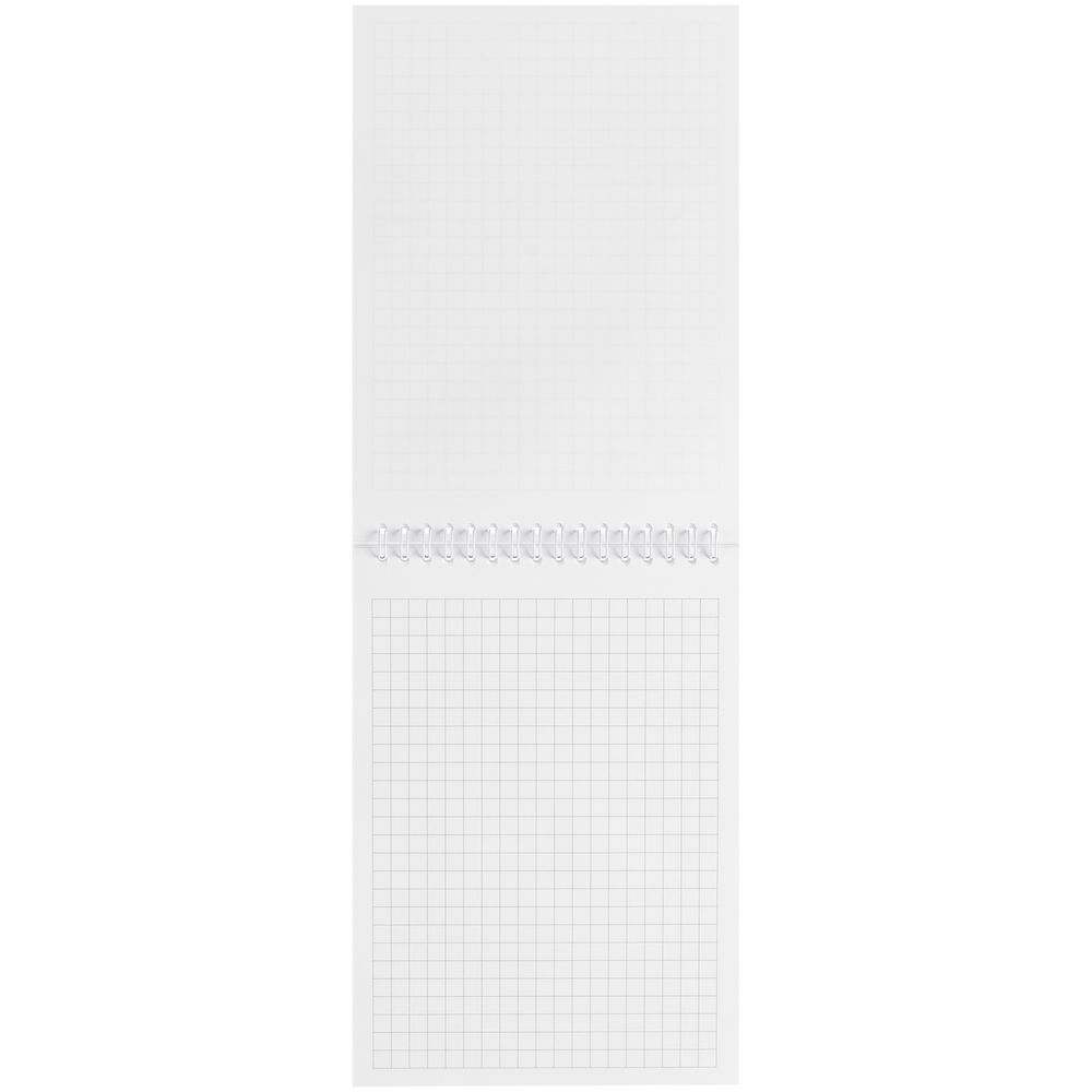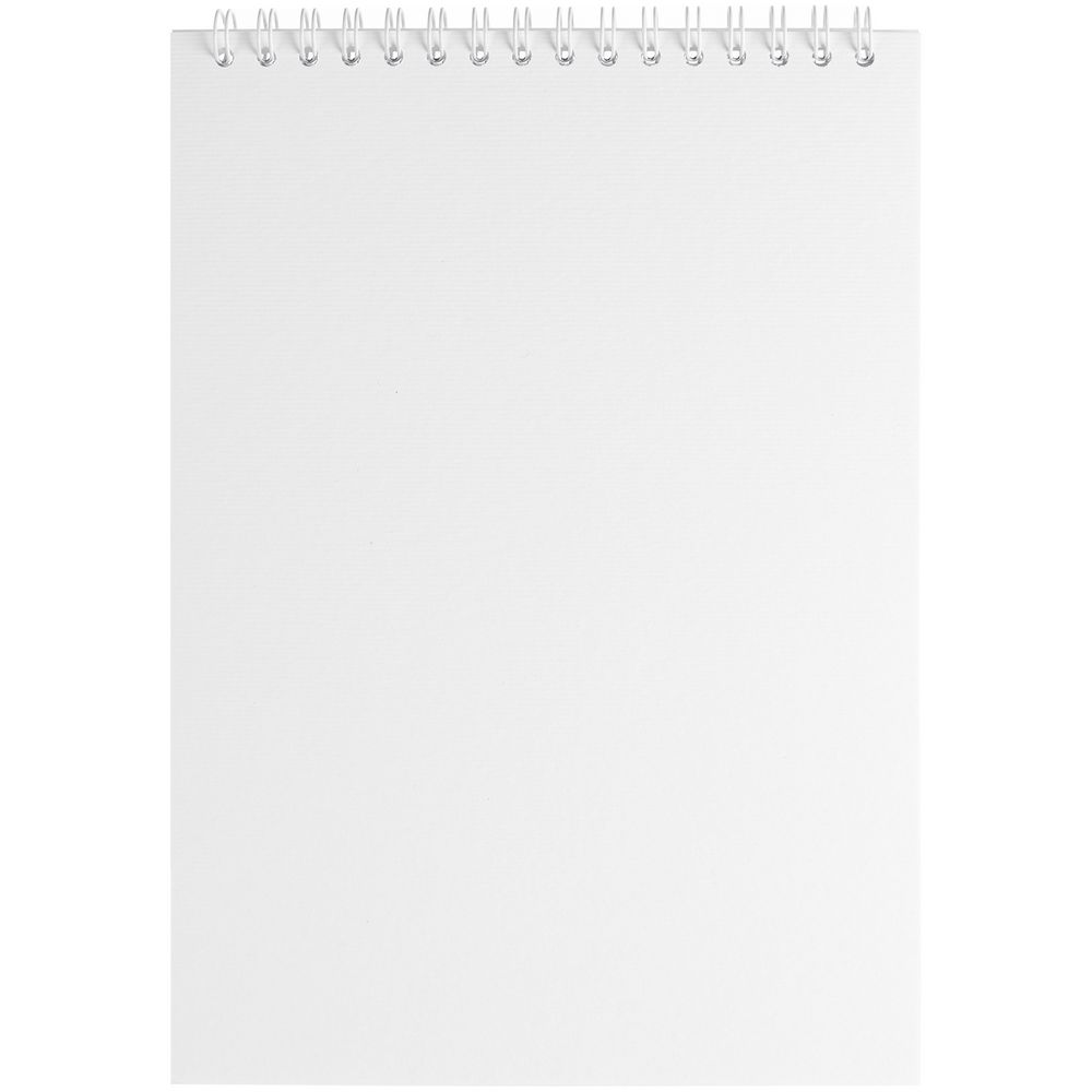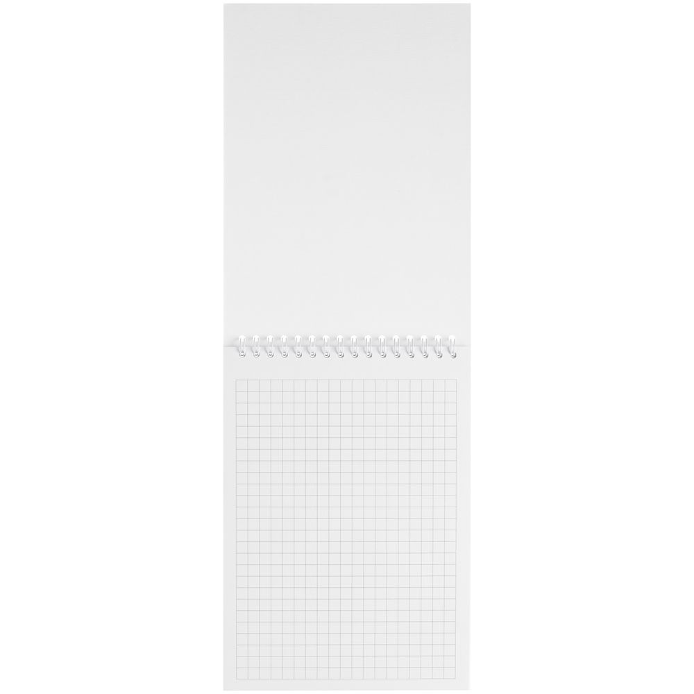 Блокнот на пружине с обложкой из белого мелованного картона плотностью 270 г/м² с покрытием софт-тач. В блоке 50 листов в клетку из бумаги плотностью 70 г/м².