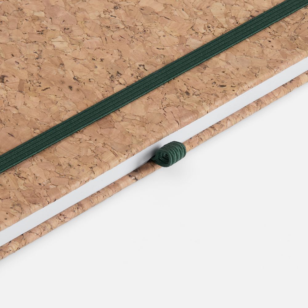 Блокнот Corkfolio — это воплощение экологичного стиля и практичности, функциональный аксессуар для тех, кто заботится об окружающей среде, ценит уникальность и внимание к деталям.Обложку из неокрашенной пробки деликатно дополняют легкие цветовые акценты, которые добавляют изделию легкого шарма. Благодаря петельке для ручки и закладке-ляссе удобно делать и находить важные записи. Натуральная пробка долго сохраняет форму, не теряет внешний вид и очень приятна на ощупь. Corkfolio — отличная возможность подчеркнуть экологическую осознанность компании.Блокнот в твердой обложке из натуральной неокрашенной пробки, дополнен цветными петлей-резинкой для ручки, ляссе и резинкой на обложку.