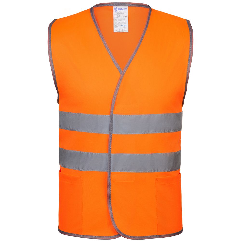 Светоотражающий жилет с застежками-липучками и двумя карманами.