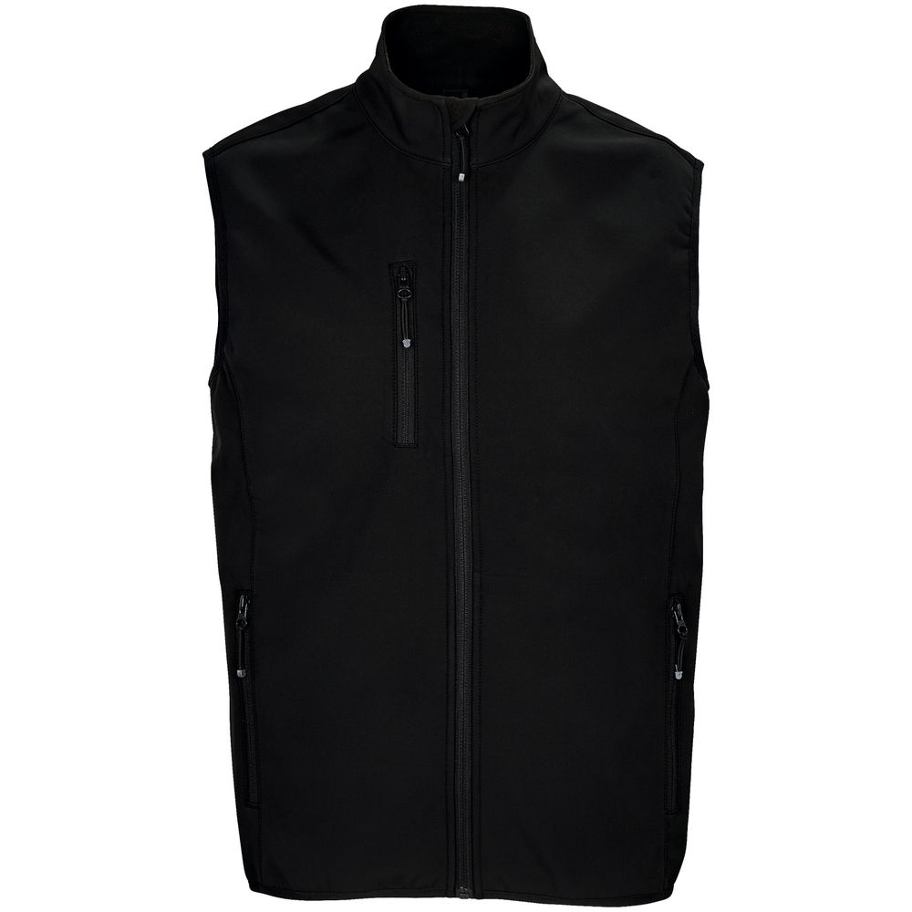 Мужской водонепроницаемый и ветрозащитный жилет на молнии из трехслойного софтшелла с флисовой изнанкой. Выполнен из переработанного полиэстера.