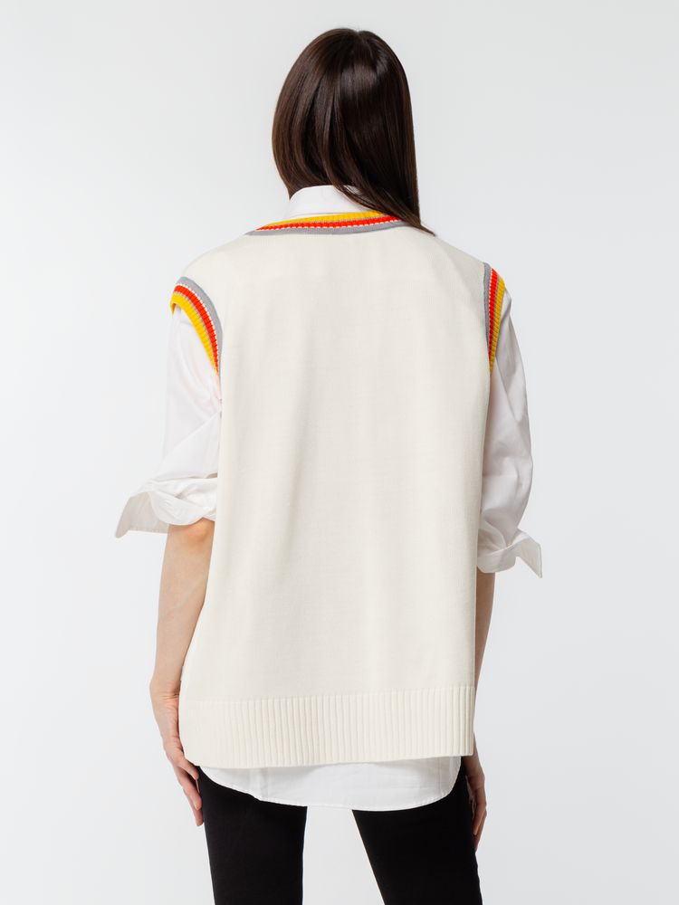 В дизайне жилета Cornell найден идеальный баланс между актуальной уличной модой и нестареющей классикой — элегантностью стиля old money. Неброские базовые цвета, легкий оверсайз и цветовой акцент на неглубоком вырезе создают самодостаточный сдержанный образ уверенного в себе и своем будущем человека.Оверсайз жилет с V-образным вырезом и цветной отделкой. В комплект к жилету прилагается легкая хлопковая сумка.