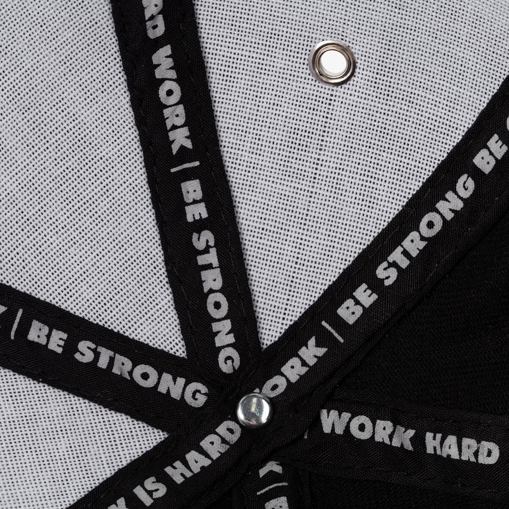 Суровая брутальность, приправленная иронией, — так можно емко охарактеризовать визуальный стиль и посыл Hard Work. Бренд посвящен трудоголикам и энтузиастам, которые не жалеют сил на любимой и, да, непременно сложной работе. Что это за работа, уже не так важно, ведь и офисный менеджер, и сотрудник цеха имеют полное право считать ее тяжелой. Предметы коллекции помогут работать продуктивно — или же расслабиться после тяжелой работы.Hard Work. Покой нам только снится.Модель: 6 клиньев без лобового шва, козырек-«сэндвич» со светоотражающим кантом, металлическая застежка и люверсы.