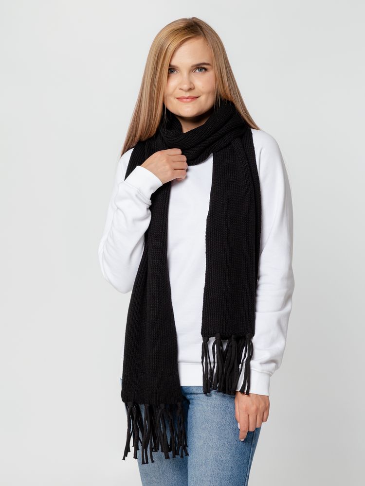Шарф объемной вязки с бахромой. Поставляется в пакете с липким краем.