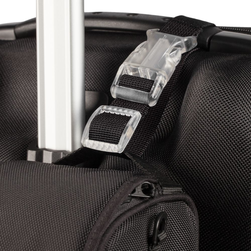 Универсальное крепление с регулируемой длиной для фиксации ручной клади на дорожных сумках и чемоданах.