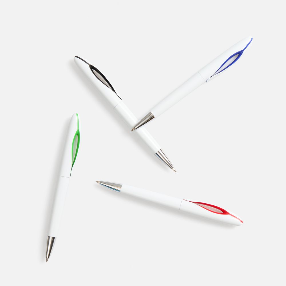 Шариковая ручка приятных округлых форм с белым глянцевым корпусом и цветовым акцентом.Механизм ручки: поворотный.Корпус ручки разбирается, стержень легко заменить.Стержень с синими чернилами.