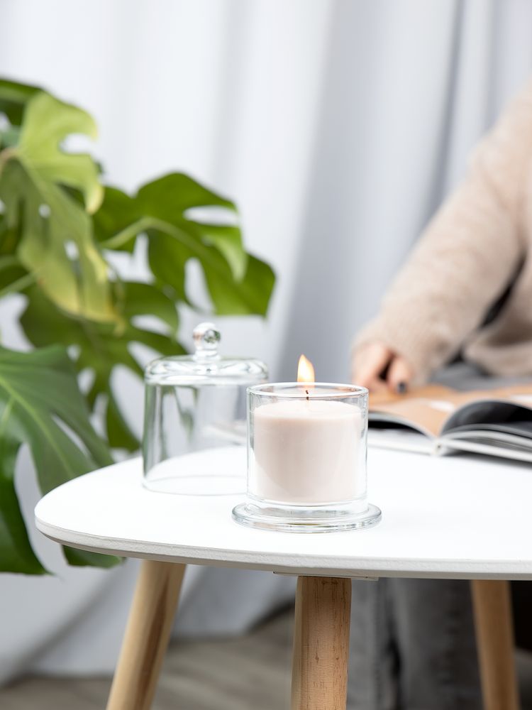 подсвечник - стекло; свеча - воск, соевый