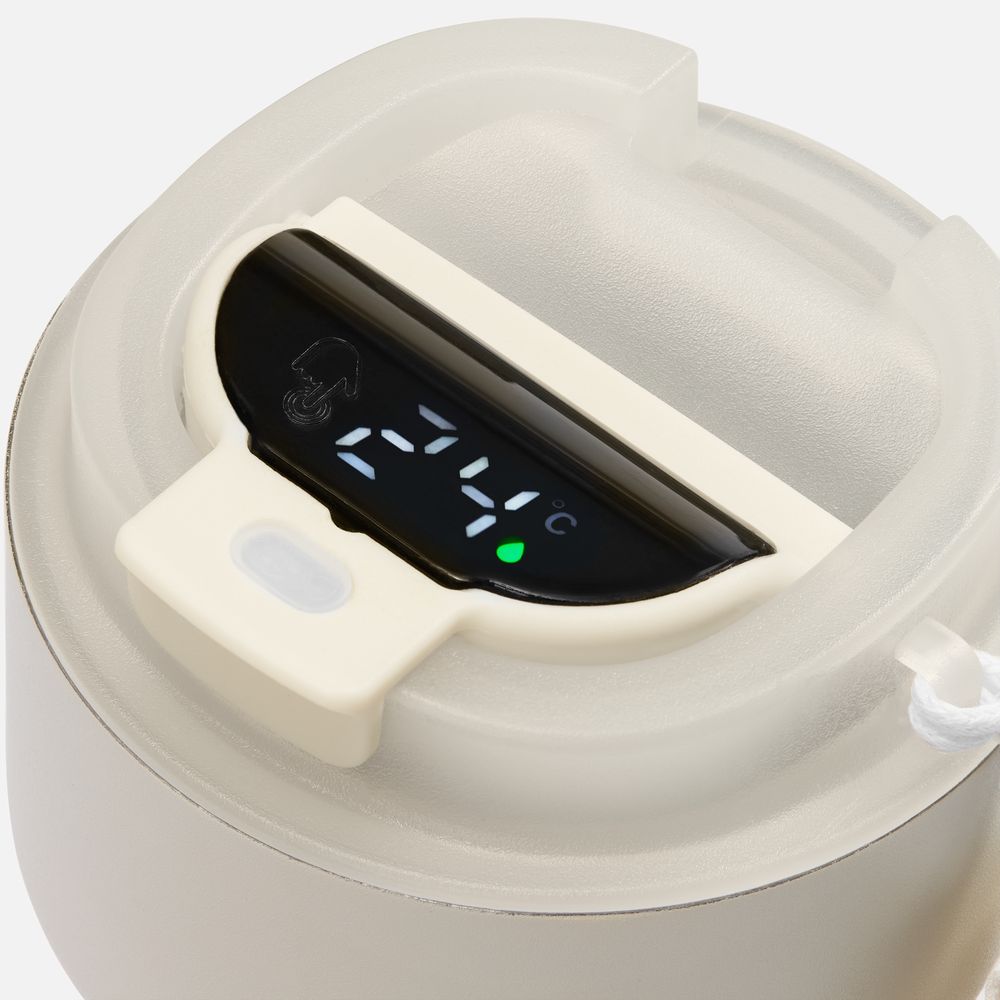 Смарт-термостакан в металлическом корпусе с легким рельефом. neoMug показывает температуру напитка на сенсорном ЖК-дисплее — точные данные собирает встроенный в крышку датчик.Двухслойная конструкция из нержавеющей стали с вакуумной изоляцией корпуса сохраняет напитки горячими (60 °C) или прохладными (10 °C) в течение 6 часов. При изменении температуры меняется цвет индикатора: для холодной воды он зеленый, для теплой — оранжевый, и для горячей — красный.Заменяемая батарейка обеспечит до года работы дисплея.Поставляется в индивидуальной упаковке.