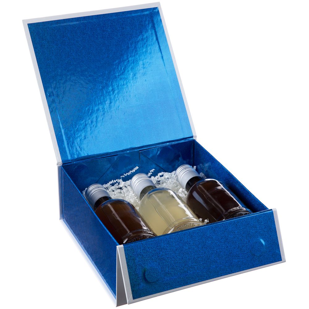 Коробка из переплетного картона, кашированного мелованной бумагой с глянцевой ламинацией. Крышка на двух магнитах дополнительно фиксируется лентой.Толщина картона 2 мм. Поставляется в плоском виде.Сборка осуществляется на магниты.
