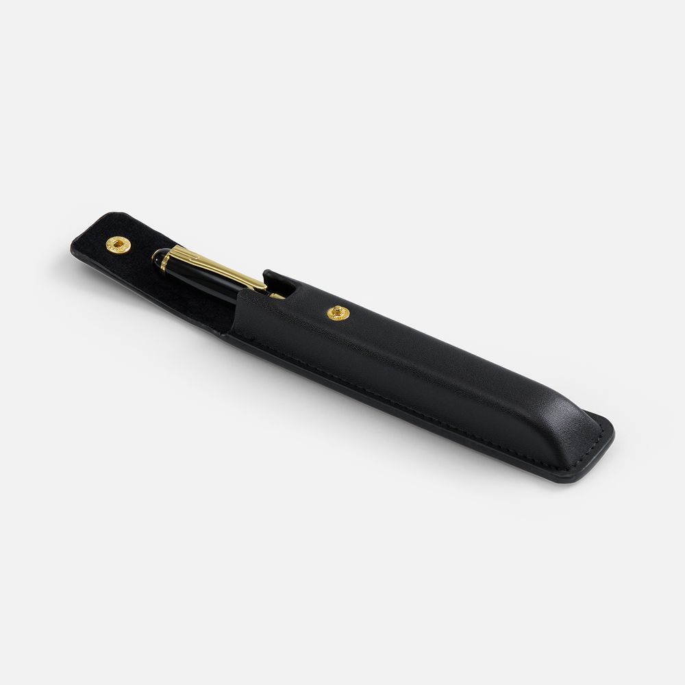 Vernis — идеальный спутник для деловых встреч и важных моментов. Роллер с лакированным корпусом и золотистыми деталями выглядит солидно и надежно, так что подойдет для подарка руководителю или ценному сотруднику. Футляр изготовлен из искусственной кожи, застегивается на кнопку.
