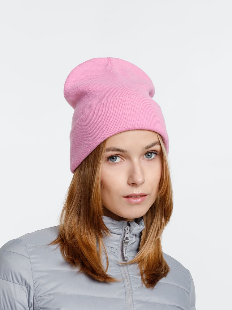 Двухслойная шапка из акриловой пряжи с регулируемым отворотом 7–10 см.Поставляется в пакете с липким краем.