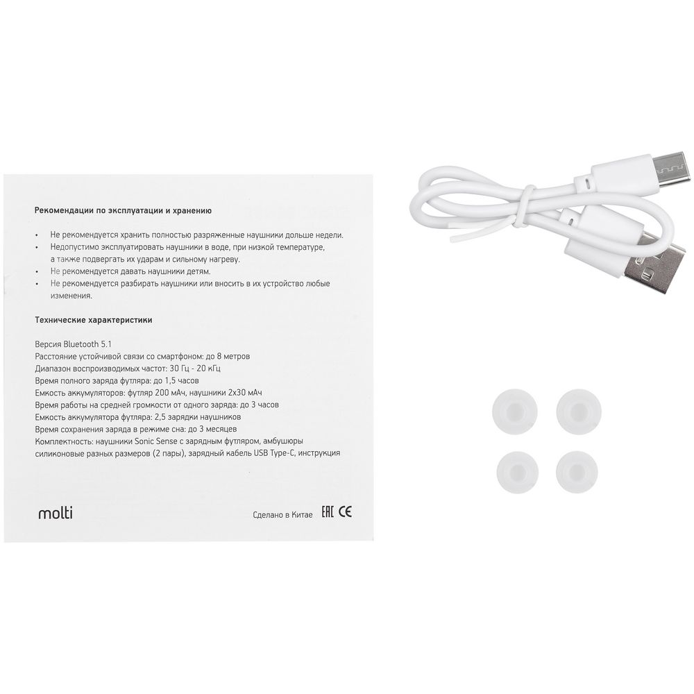 Перед использованием наушники и футляр-базу необходимо зарядить! Для первого сопряжения обоих включенных наушников между собой нужно подержать пальцы порядка 2 секунд на корпусах наушников, затем подождать не менее 4–5 секунд перед поиском и выбором устройства в списке bluetooth-устройств вашего смартфона. Если подсоединился только один наушник — необходимо удалить/забыть данное сопряжение в списке телефона, выключить наушники, затем их включить и через 5 секунд повторить соединение. Аналогично следует поступать при проверке нескольких комплектов. Сетевое имя наушников первого комплекта необходимо удалить из списка и только после этого включать следующий комплект. Оба наушника первого комплекта должны быть выключены, иначе возможно перекрестное спаривание новой и уже проверенной пары наушников.
