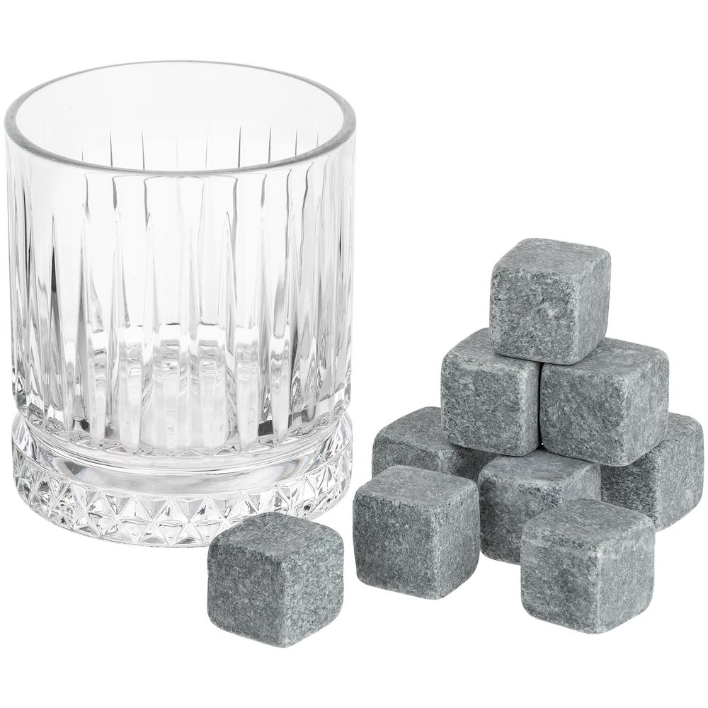 Стильный подарок для лидеров, мыслителей, стратегов. Для тех, кто любит поразмышлять в одиночестве за стаканчиком благородного напитка.Камни изготовлены из талькохлорита (мыльного камня), который прошел вторичную обработку и очистку. Благодаря высокой теплоемкости и теплопроводности камни охлаждают гораздо лучше льда и при этом не тают, а значит, не разбавят напиток и не изменят его вкусовых свойств.В наборе: стакан (210 мл), 9 камней для охлаждения напитка, подарочная коробка.