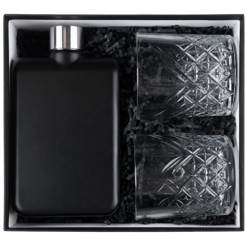 Лаконичный и стильный набор Midnight Blues позволит легко прогнать любую печаль и вдоволь насладиться любимым напитком.Стильная и практичная фляга вместе с элегантными стаканами станет прекрасным подарком для ценителей такого напитка, как виски. Благодаря матовой поверхности флягу особенно приятно держать в руке. Резной стакан удобной формы позволяет в полной мере насладиться вкусом, цветом и ароматом напитка. Емкость фляги 473 мл.Емкость стакана 360 мл.