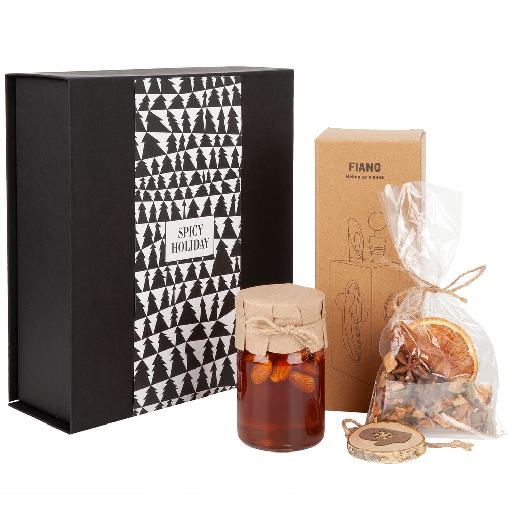 Набор Spicy Holiday словно создан для долгих морозных вечеров: в такой компании легко устроить праздник удовольствия и вкуса! Солидный комплект для качественной винной дегустации позволит почувствовать себя сомелье даже дома, а мед и традиционные специи придадут домашнему глинтвейну особенный вкус и аромат. Наполните праздничные дни и бокалы пряностью согревающего напитка!В комплект входят: Набор упакован в картонную коробку черного цвета с наклейкой и крышкой на магните.