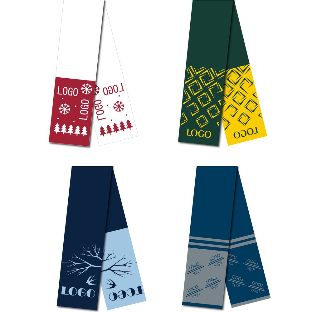 Шарф с вывязанным логотипом и/или индивидуальным рисунком в фирменной цветовой гамме.Модель: однотонный гладкий шарф с жаккардовым узором в 2-3 цвета по краям (15-25 см). Самый популярный вариант — вязание в 2 цвета — позволяет получить на изнанке зеркальное отображение рисунка с лицевой стороны и инверсию цветов. Модель не имеет швов, вяжется единым полотном. Имеет лицевую и изнаночную сторону. Один основной цвет должен присутствовать на всех участках шарфа. Цвет: выберите цветовое решение по таблице «Актуальные цвета нитей» (на фото).