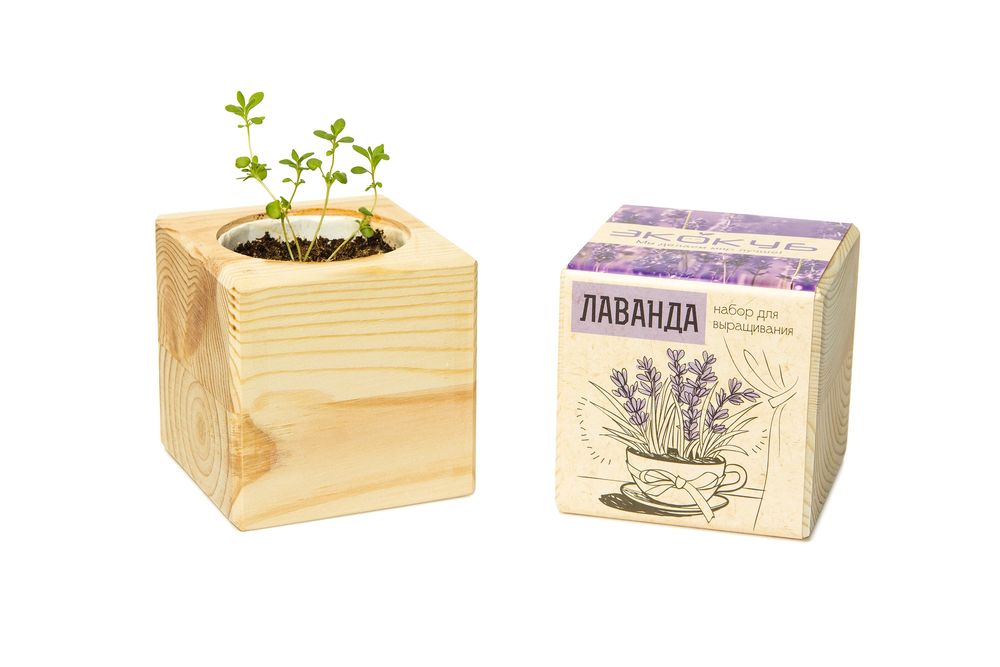 Экокуб оживит рабочее место или добавит уют домашнему интерьеру.В наборе: деревянный куб, грунт, семена лаванды.Инструкция по выращиванию находится на внутренней стороне упаковки.Срок годности 2 года. Дата изготовления указана на шубере.