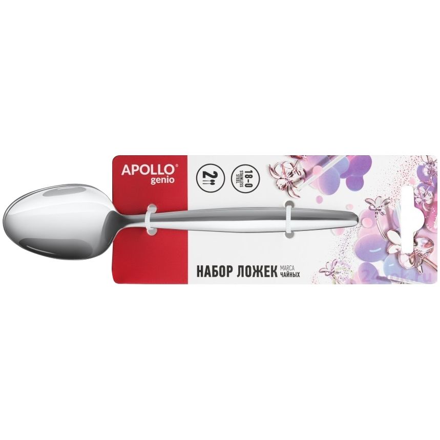 Минималистичный дизайн данного набора чайных ложек будет уместен как в повседневном использовании, так и при сервировке праздничного стола.В наборе 2 ложки. Поставляются в индивидуальной упаковке.