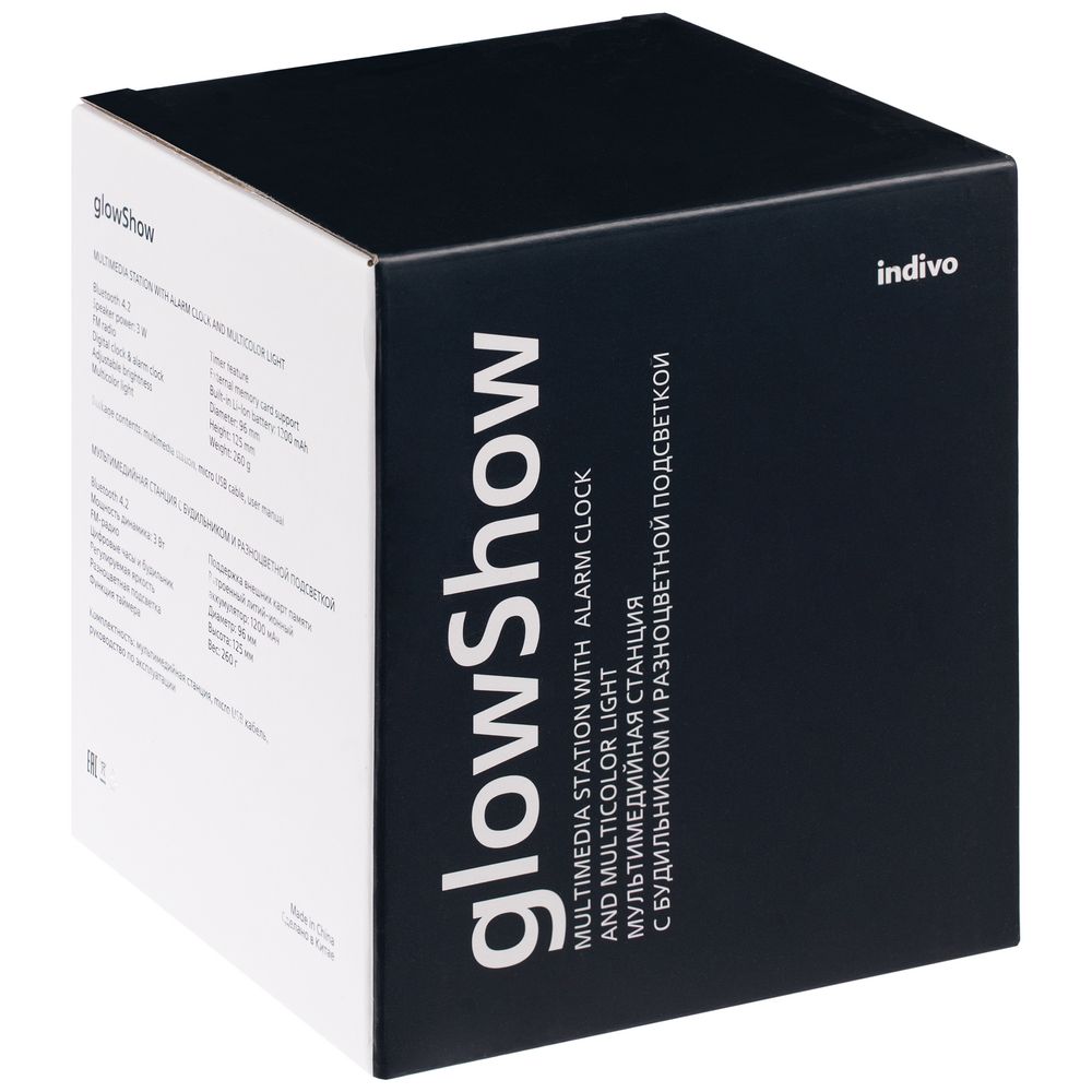 glowShow — мультимедийная станция, которая работает как беспроводная Bluetooth-колонка с расширенными функциями.Музыку на устройстве можно воспроизводить при беспроводном подключении, через AUX-разъем для наушников, или с внешней карты памяти. Также в колонку встроены успокаивающие звуки и белый шум: они воспринимаются мозгом как безопасные, поэтому будут отличным фоном рабочего дня, а также помогут снять лишнее напряжение до или во время сна.Электронные часы позволяют следить за временем, а будильник — настраивать оптимальный момент пробуждения или ставить напоминания о завершении задачи.glowShow — это также интерьерный светильник, яркость и цвет подсветки которого можно выбрать на свой вкус с помощью легких касаний.Поставляется в индивидуальной упаковке.