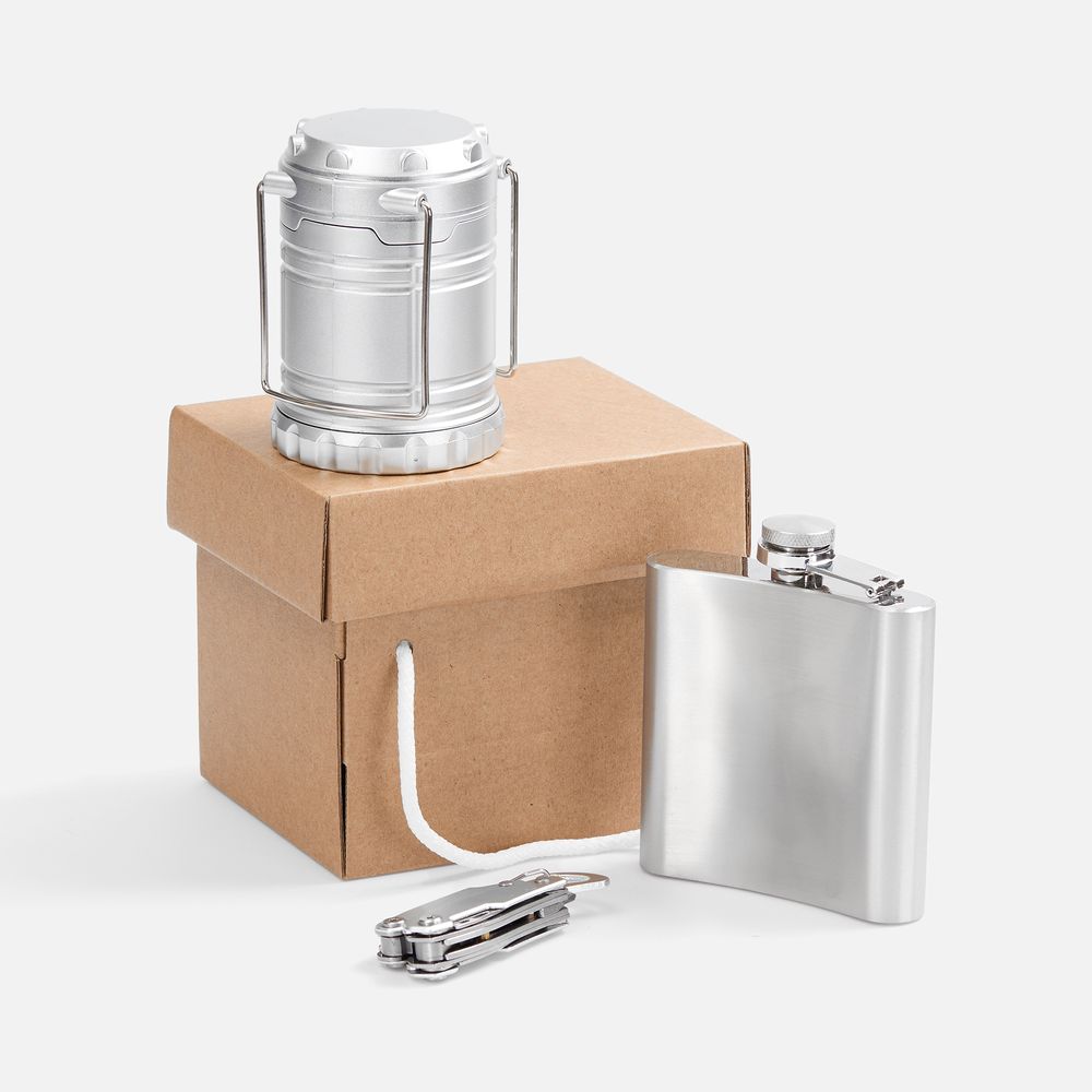 МАТЕРИАЛ мультитул - нержавеющая сталь; алюминий; фляжка - нержавеющая сталь, 304; фонарь - АБС-пластик; коробка - микрогофрокартон