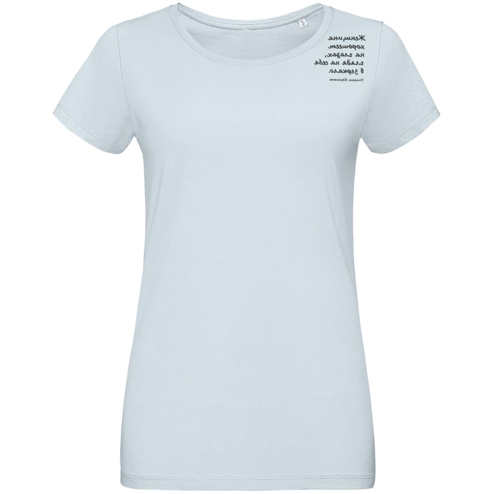 ФУТБОЛКА ЖЕНСКАЯ «ЖЕНЩИНА ХОРОШЕЕТ», ГОЛУБАЯ