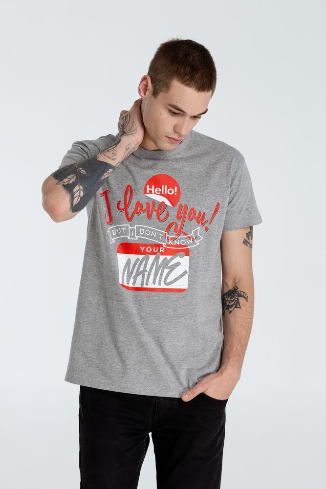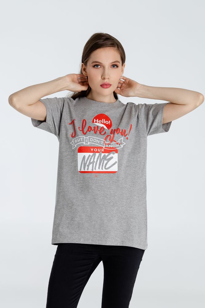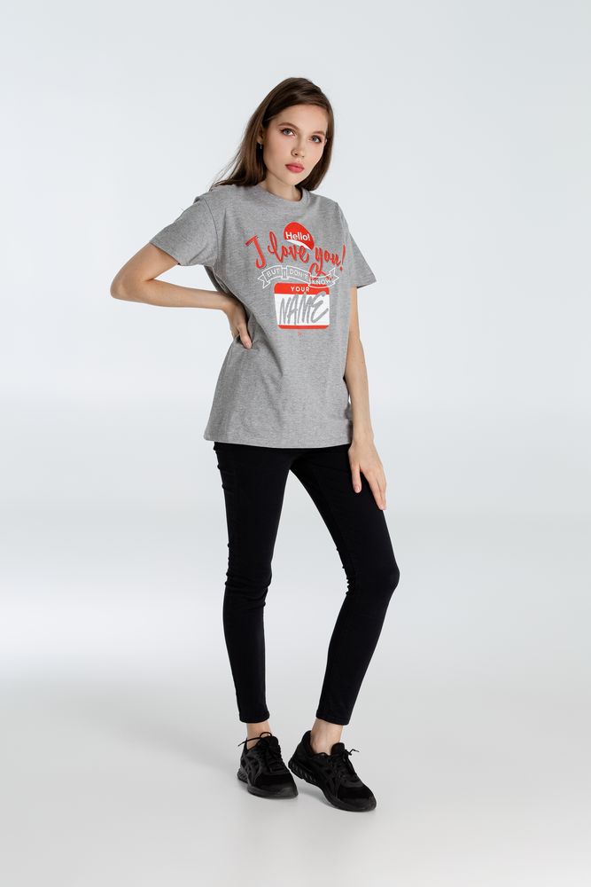 Футболка Hello! I Love You!, серый меланж