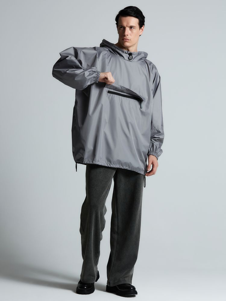 Дождевик-анорак Hard Work, укороченный, серый, единый размер