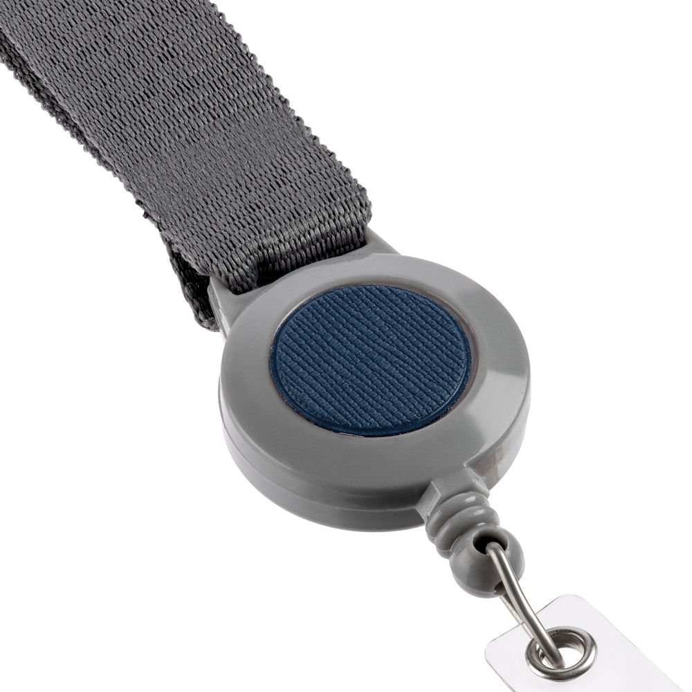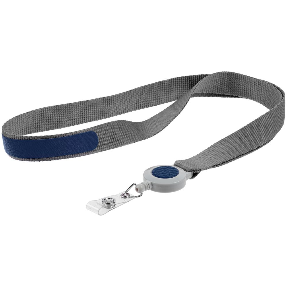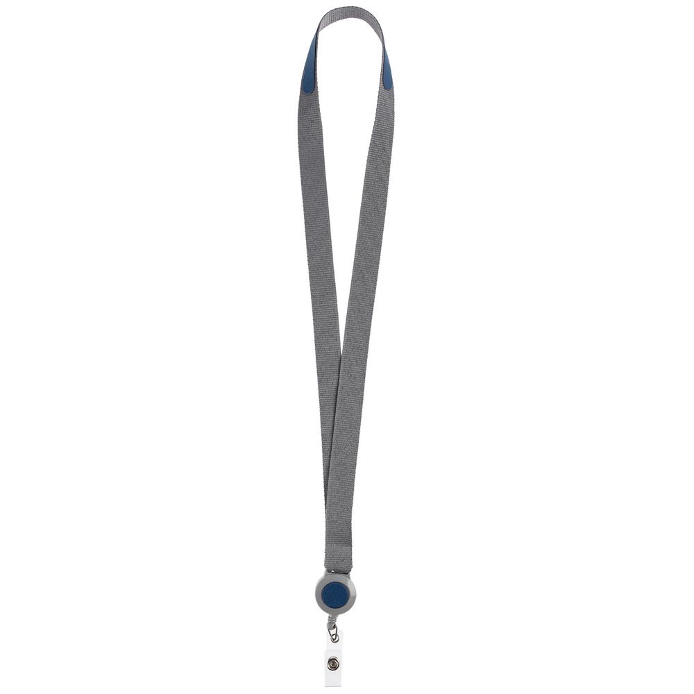 Лента для бейджа с ретрактором Devon, серая с синим