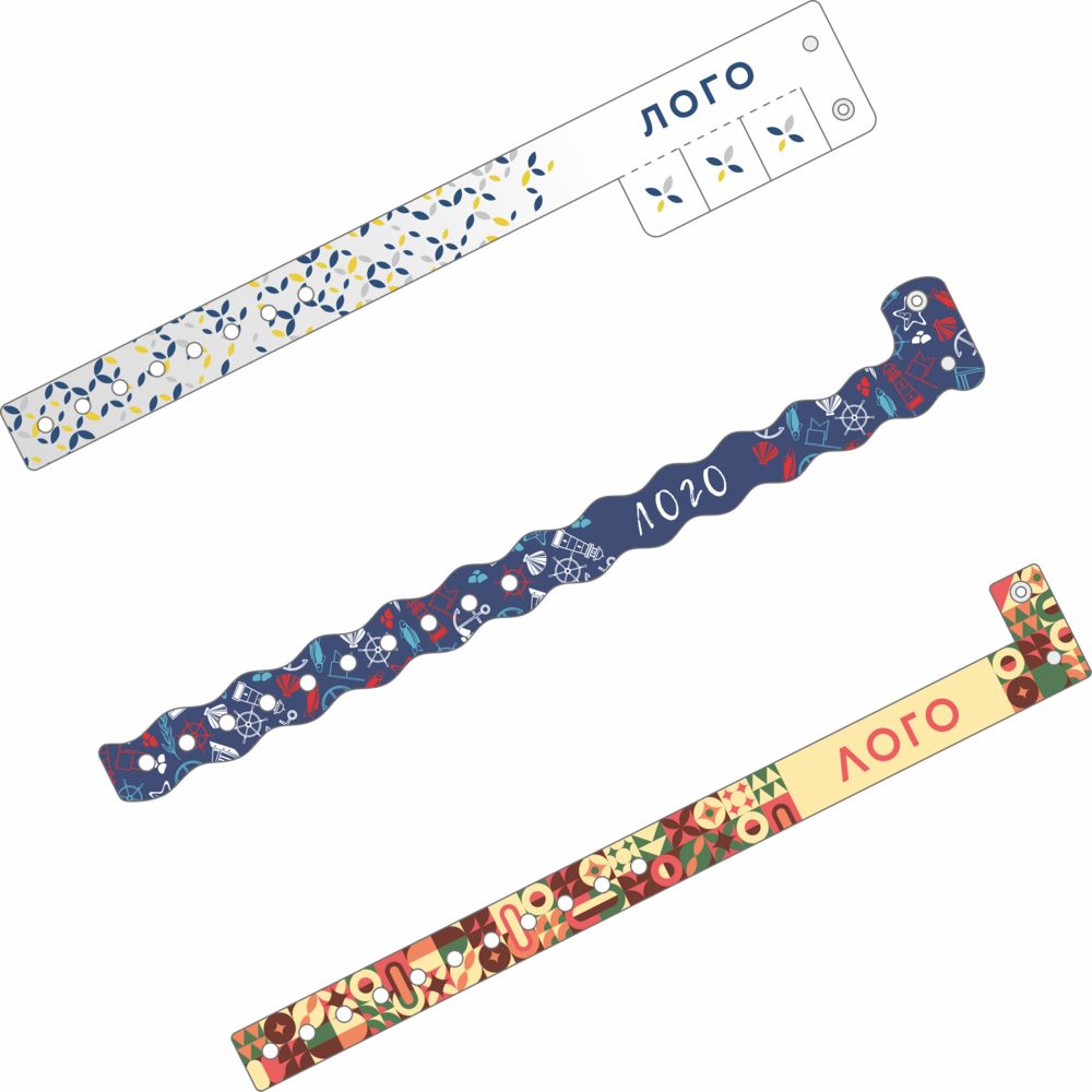 Яркие браслеты используются для идентификации и контроля посетителей на мероприятиях и в закрытых заведениях. Могут также использоваться в аквапарках, бассейнах и на пляжах. Не занимают много места при хранении и транспортировке.Полноцветная цифровая печать с одной стороны входит в стоимость изделия. Внутренняя сторона браслета белого цвета. Приложите к заказу оригинал-макет, выполненный в конструкторе.