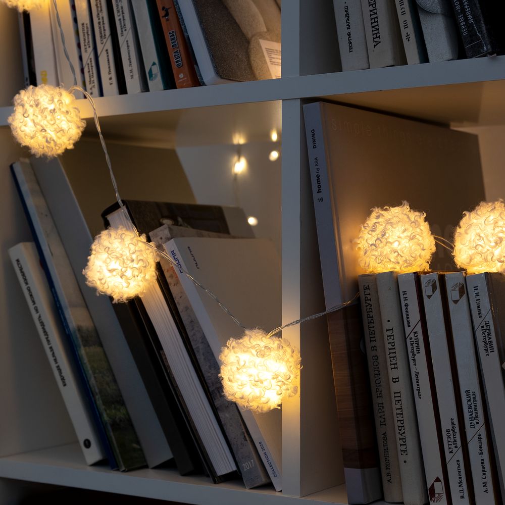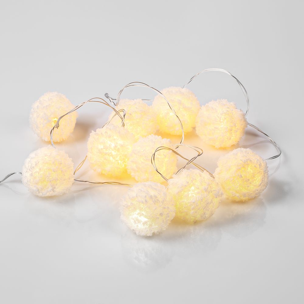Снег может искриться и сверкать не только в солнечный морозный день, но и на елочке, украшенной гирляндой Snowflow! Этот оригинальный вариант декоративного освещения — настоящее воплощение зимней магии. Пушистые снежки вызывают умиление и неподдельный восторг, с легкостью добавляя еще немного зимнего очарования в праздничный интерьер.10 пушистых шариков с лампочками теплого света. Работает от 2 батареек АА (в комплект не входят).