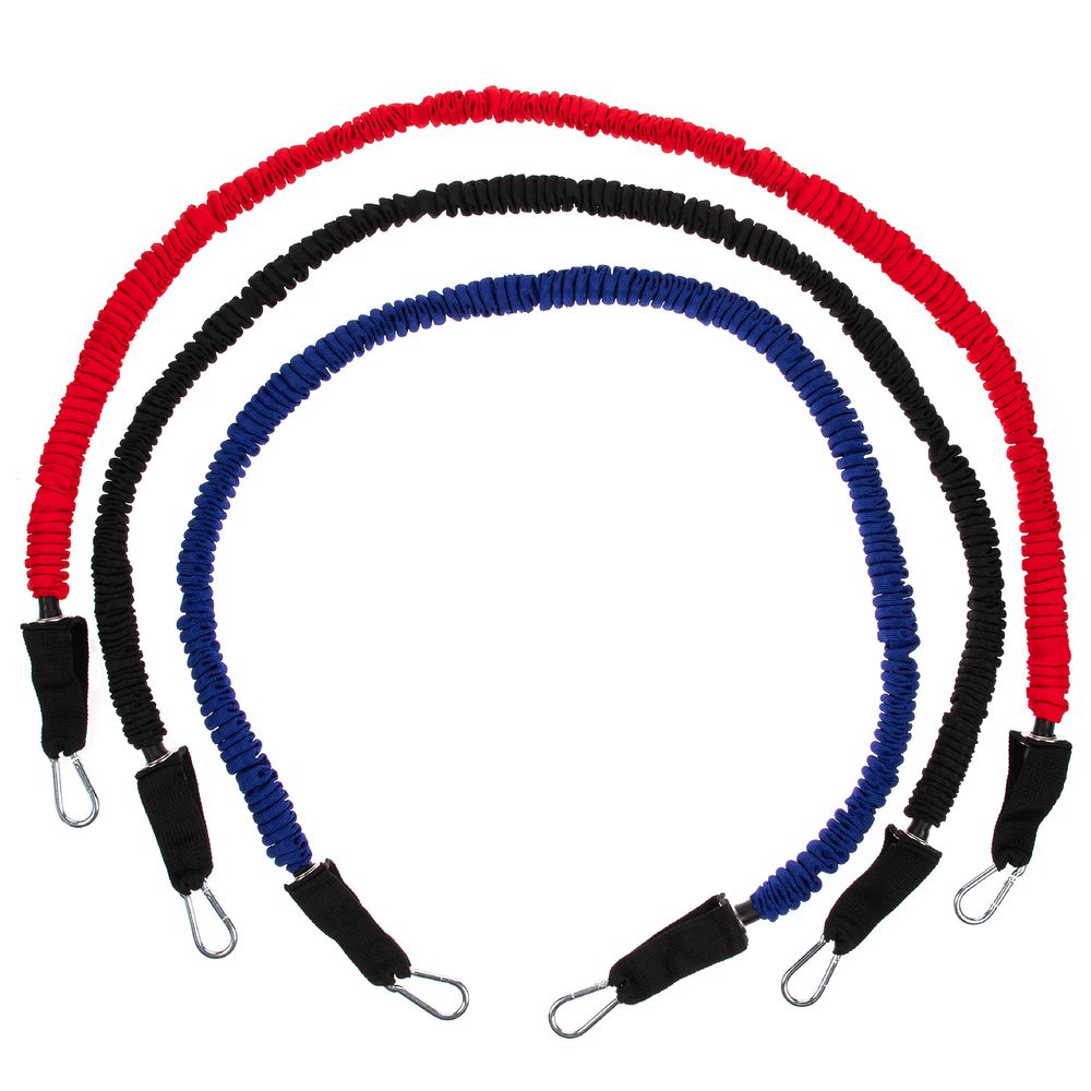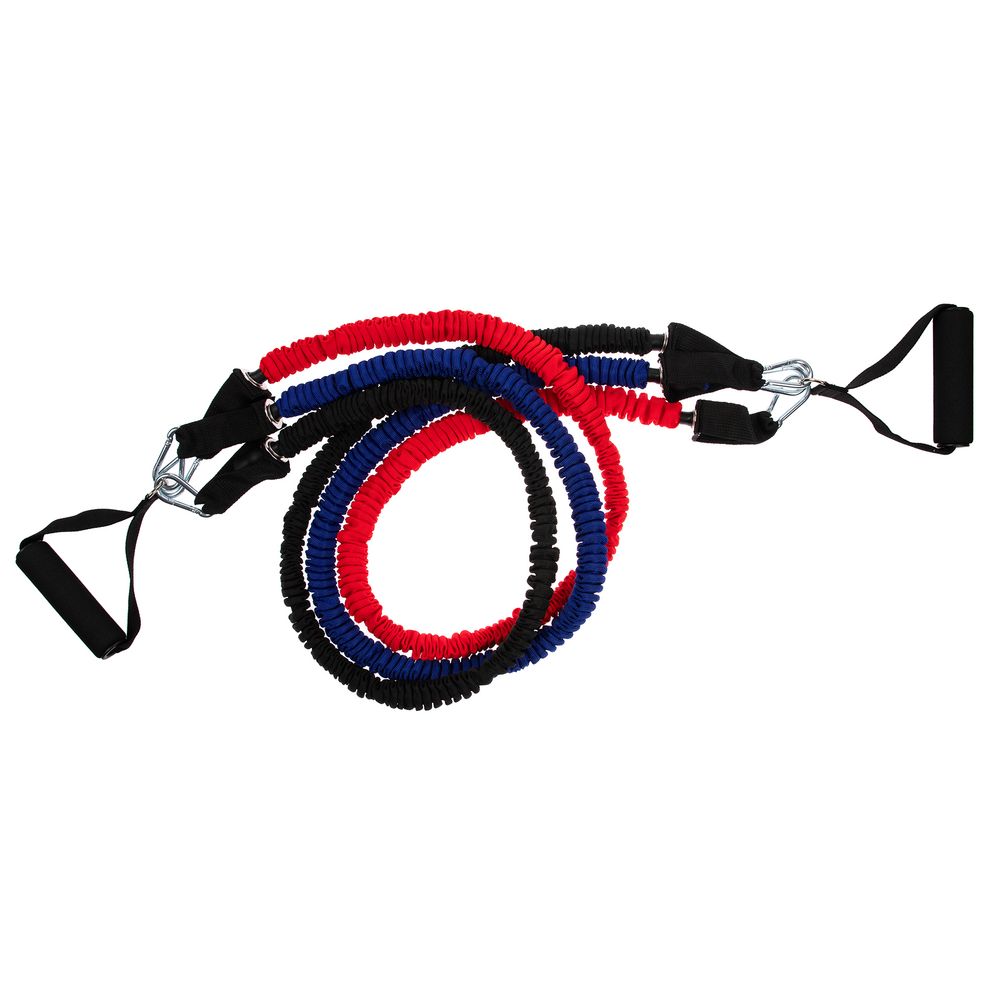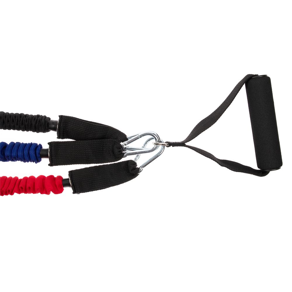 Набор эспандеров Gym Team предназначен для выполнения широкого диапазона физических упражнений: разогрева мышц, отработки ударной и бросковой техники, выполнения комплексов упражнений на развитие силы и выносливости. Используя такие эспандеры, можно прокачать практически все мышцы в теле.В набор входят 3 трубчатых эспандера с разной степенью нагрузки от 6,8 до 15,8 кг. Меняя и комбинируя их, можно усиливать или ослаблять нагрузку во время тренировки.Тканевые чехлы защищают латексные тросы эспандеров от повреждения. Рукоятки с покрытием из мягкого нескользящего вспененного материала обеспечивают удобство и надежность хвата.Каждый эспандер оснащен надежным металлическим карабином с дополнительным фиксатором, который гарантирует безопасность при выполнении упражнений и позволить плавно натягивать резинку. Инвентарь можно закрепить на двери при помощи дверного анкера (в комплекте) и с удобством добавить в тренировку больше разнообразия.