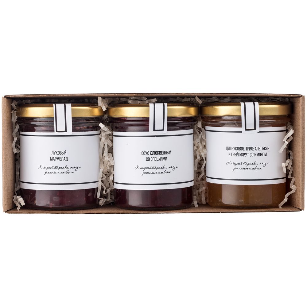 Добавьте эти необычные соусы к сырной тарелке, закускам или основным блюдам из мяса и птицы и расширьте для себя диапазон возможных вкусовых сочетаний.В набор входят три вида соусов: Объем банок 167 мл.Набор упакован в коробку с лентой и биркой, предназначенной для нанесения.Срок годности: 24 месяца.