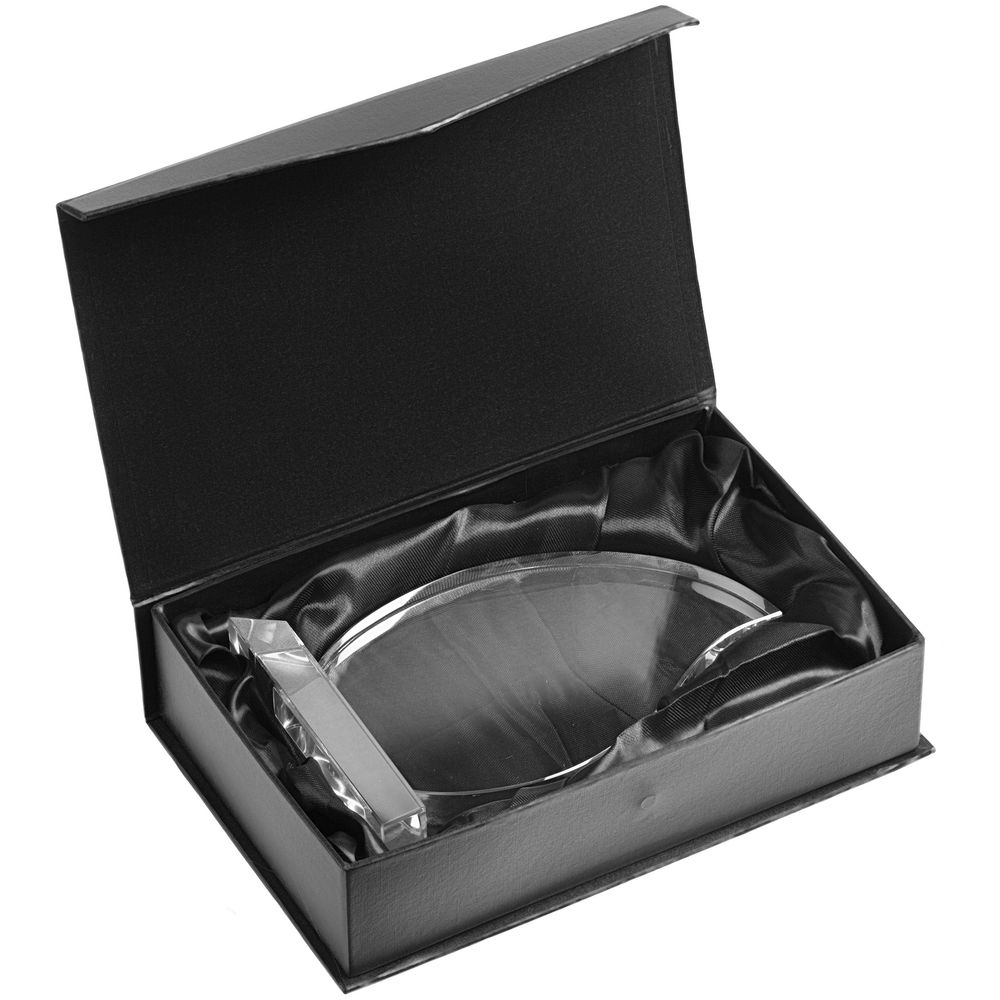 Награда изготовлена из стекло К9, в основе которого лежит оптическое боросиликатное стекло. Эту марку стекло отличает низкий процент посторонних включений, высокий показатель преломления и высокая прозрачность — идеальные качества для изготовления наград премиального уровня.