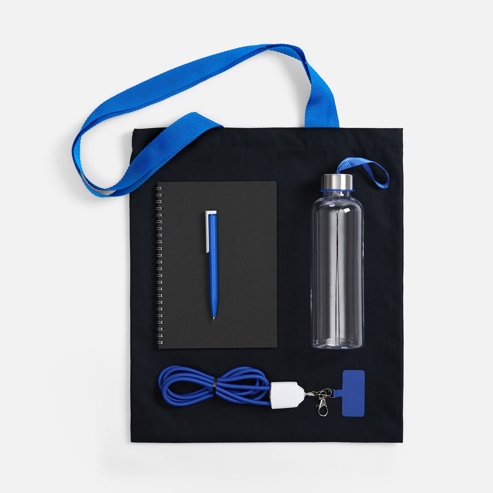 МАТЕРИАЛ сумка - хлопок, 240 г/м²; ручки - полиэстер; кабель-ланьярд - нейлон, пластик; металл; бутылка - пластик, пищевой; крышка - металл, пластик; блокнот - бумага, картон; ручка - пластик